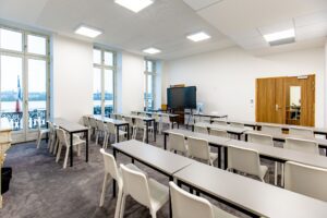 Situé au 4 quai de Queyries à Bordeaux, nous avons réhabilité ce bâtiment patrimonial emblématique pour accueillir le groupe d’éducation privé EDUSERVICES. Ce projet de transformation en Établissement Recevant du Public (ERP) a permis de redonner vie à cet édifice historique tout en respectant son caractère architectural. Grâce à une modernisation soigneuse et des aménagements adaptés, le bâtiment combine désormais patrimoine et innovation pour offrir un cadre d’apprentissage exceptionnel. Cette réhabilitation reflète notre volonté de préserver le patrimoine bordelais tout en répondant aux besoins d’un secteur éducatif en pleine expansion.
